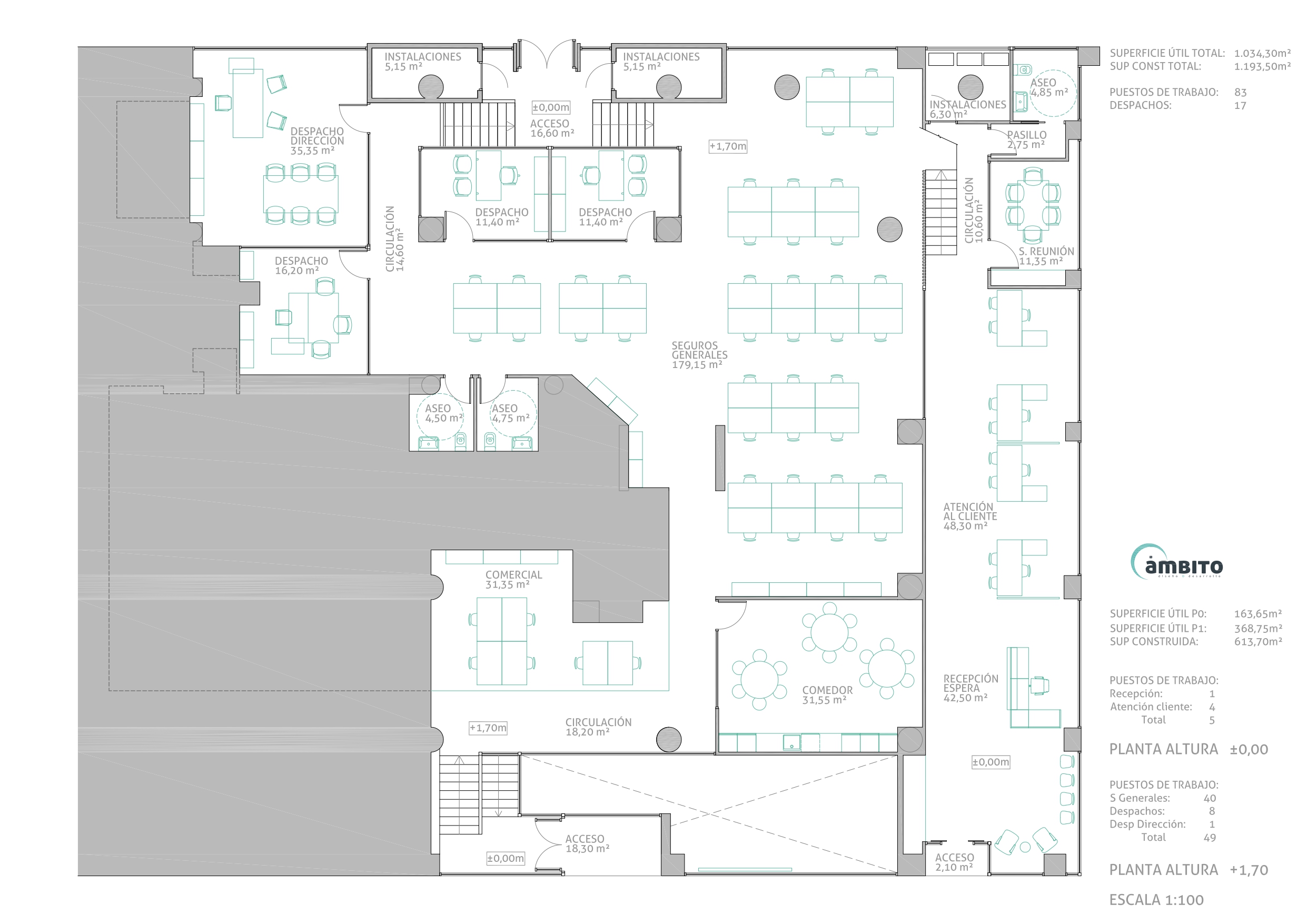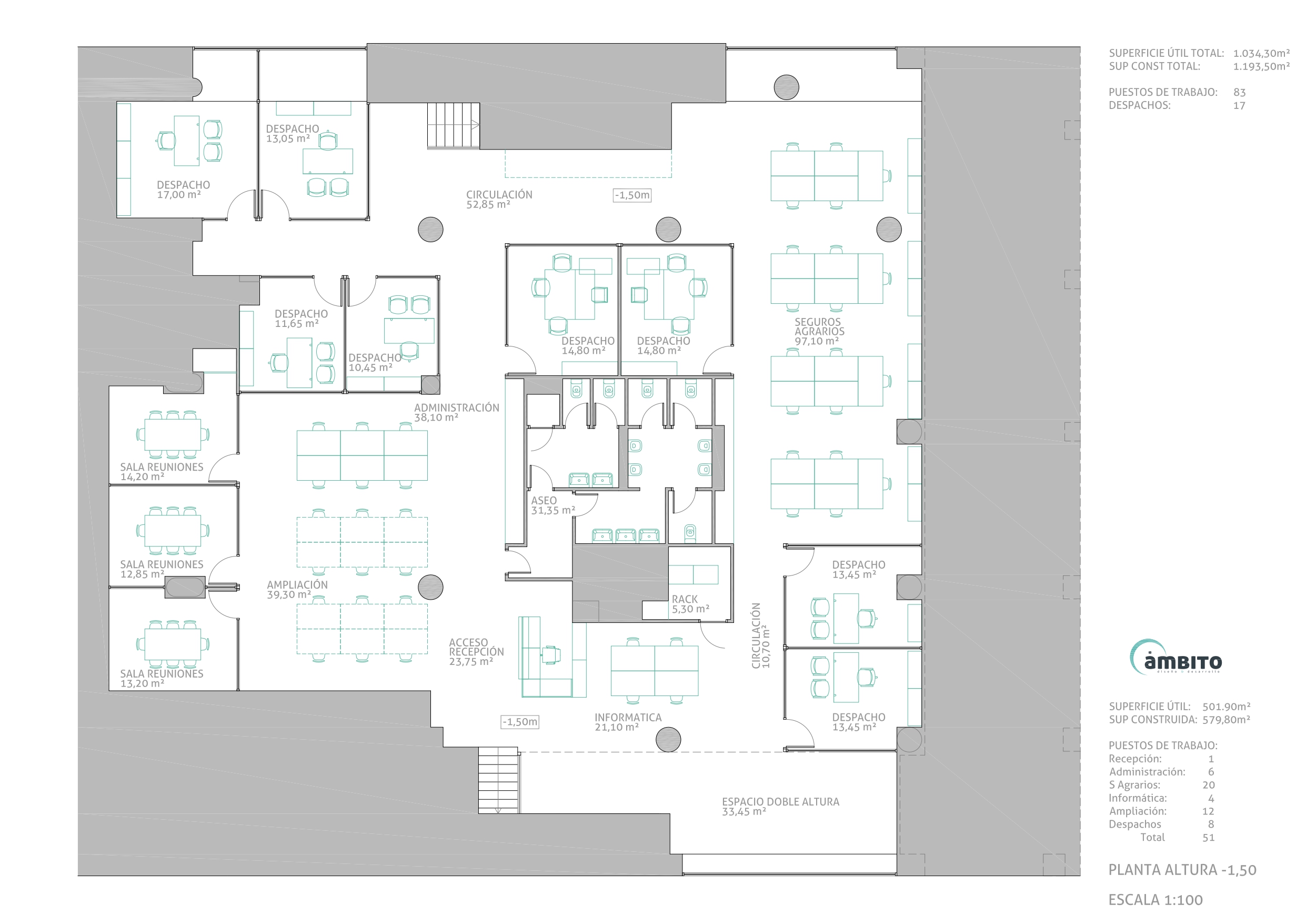 Datos: Acondicionamiento de local de 758,15m² de Superficie Construida, destinado a Uso Administrativo para la actividad de Correduría de Seguros, para Licencia Urbanística y de Apertura.